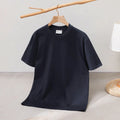 The Élan unisex T-shirt in 240g double yarn cotton offers durability and a soft touch, featuring a round neck and minimalist design. Timeless elegance and premium comfort, perfect worn alone or layered.